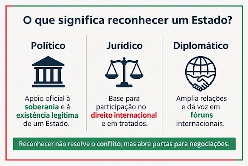 Reconhecer um Estado é um ato político e jurídico que indica apoio à sua soberania e ao direito à autodeterminação de seu povo.